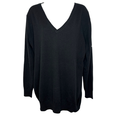 Nili Lotan Feron Cashmere Sweater in Black. V-neck. Long sleeves. Ribbed collar, hemline, and cuffs. 100% cashmere. Size small. Oversized fit. In excellent pre-owned condition, no flaws. B48", L28".